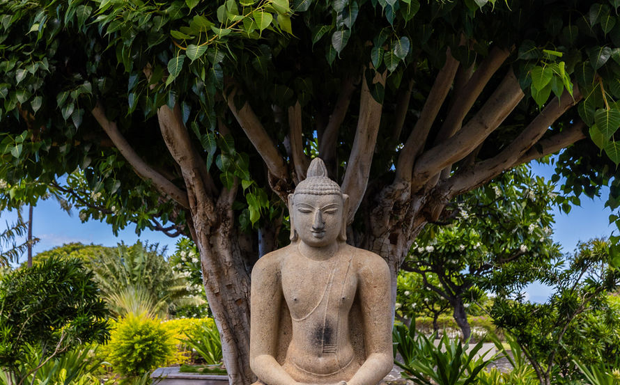 Mauna Kea Resort POrte Cochere, stairs to Buddha and mezzanine